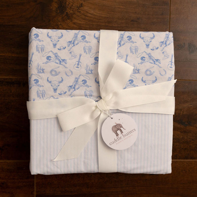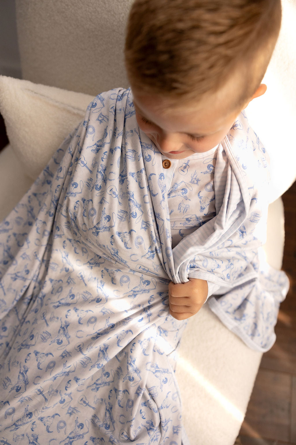 Wrap your little one in the luxurious softness of our Beau Blue Butter Blanket. This double-layered bamboo blanket is perfect for swaddling, tummy time, or as a cozy stroller companion. Its generous size ensures it grows with your child, providing comfort for years to come. 50x50"