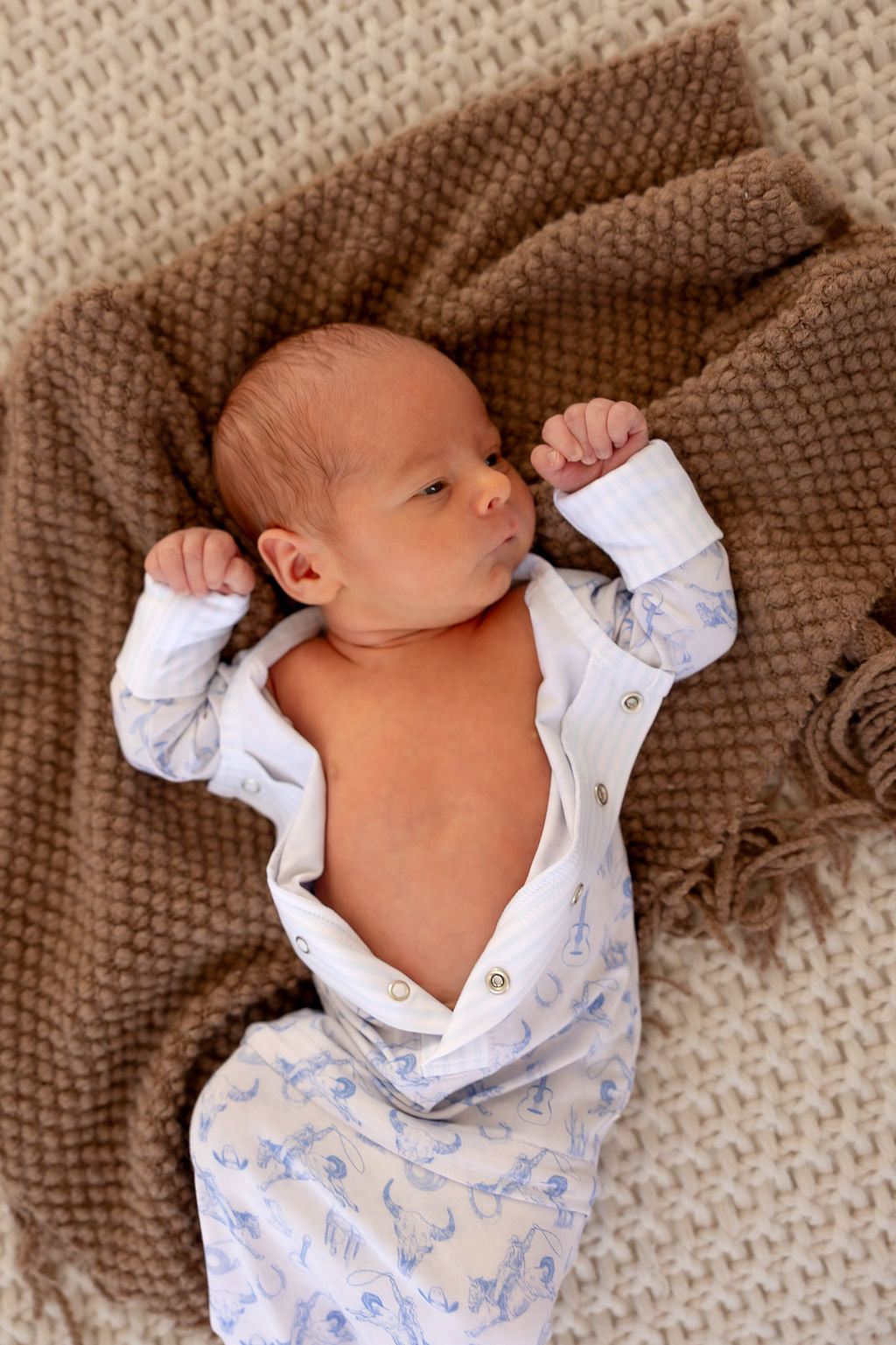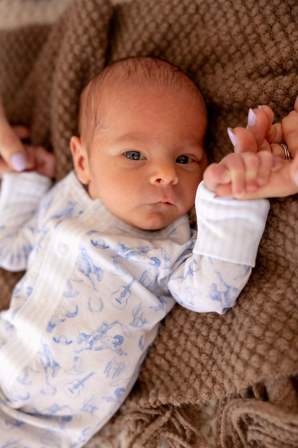 Wrap your newborn in the gentle embrace of our Beau Blue Newborn Nursery Gown. Crafted from ultra-soft bamboo viscose, this gown ensures your baby's comfort while offering practical features for parents. The hospital-friendly design includes functional snap-down chest for easy access and an open bottom with elastic for quick diaper changes. Fold-over mitts keep tiny hands warm and protected.