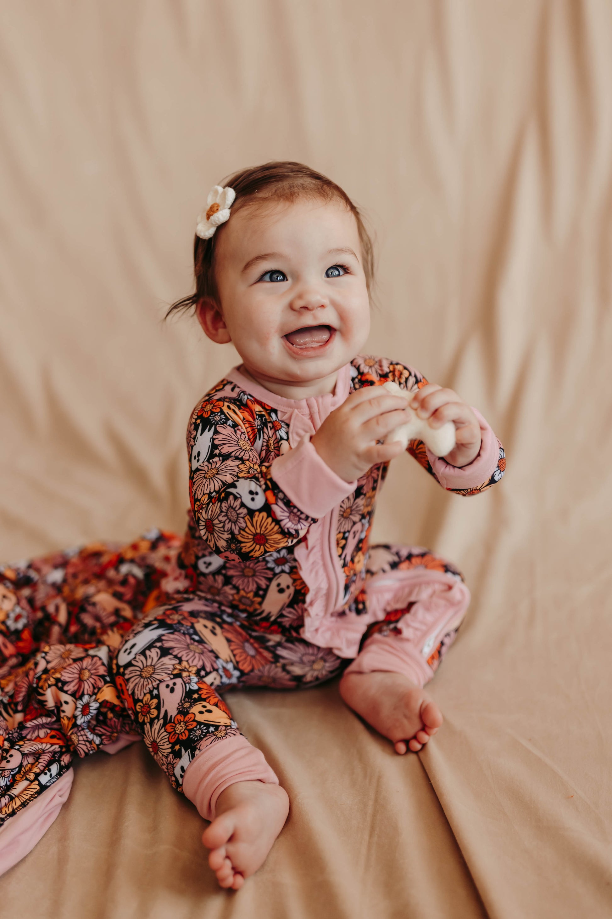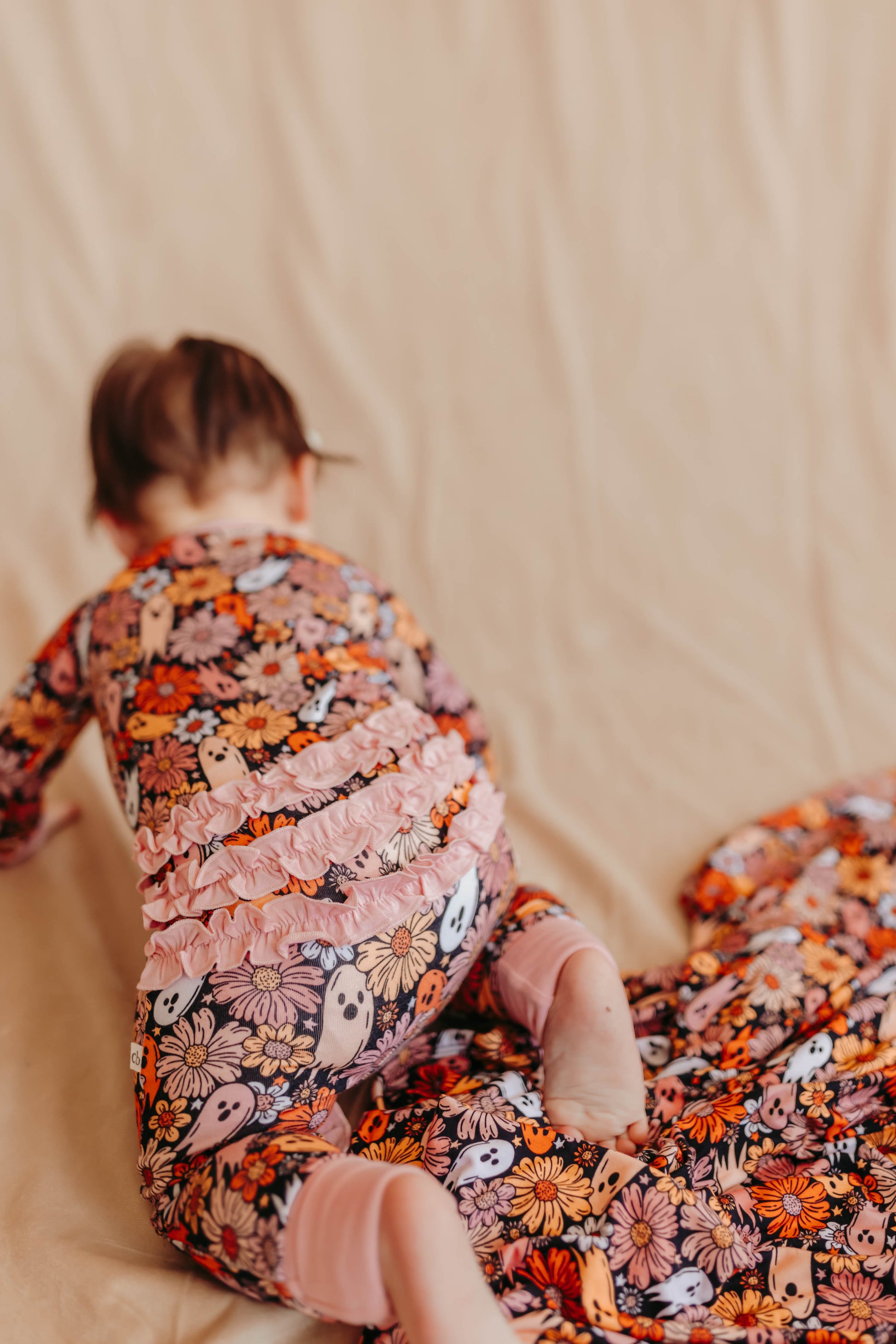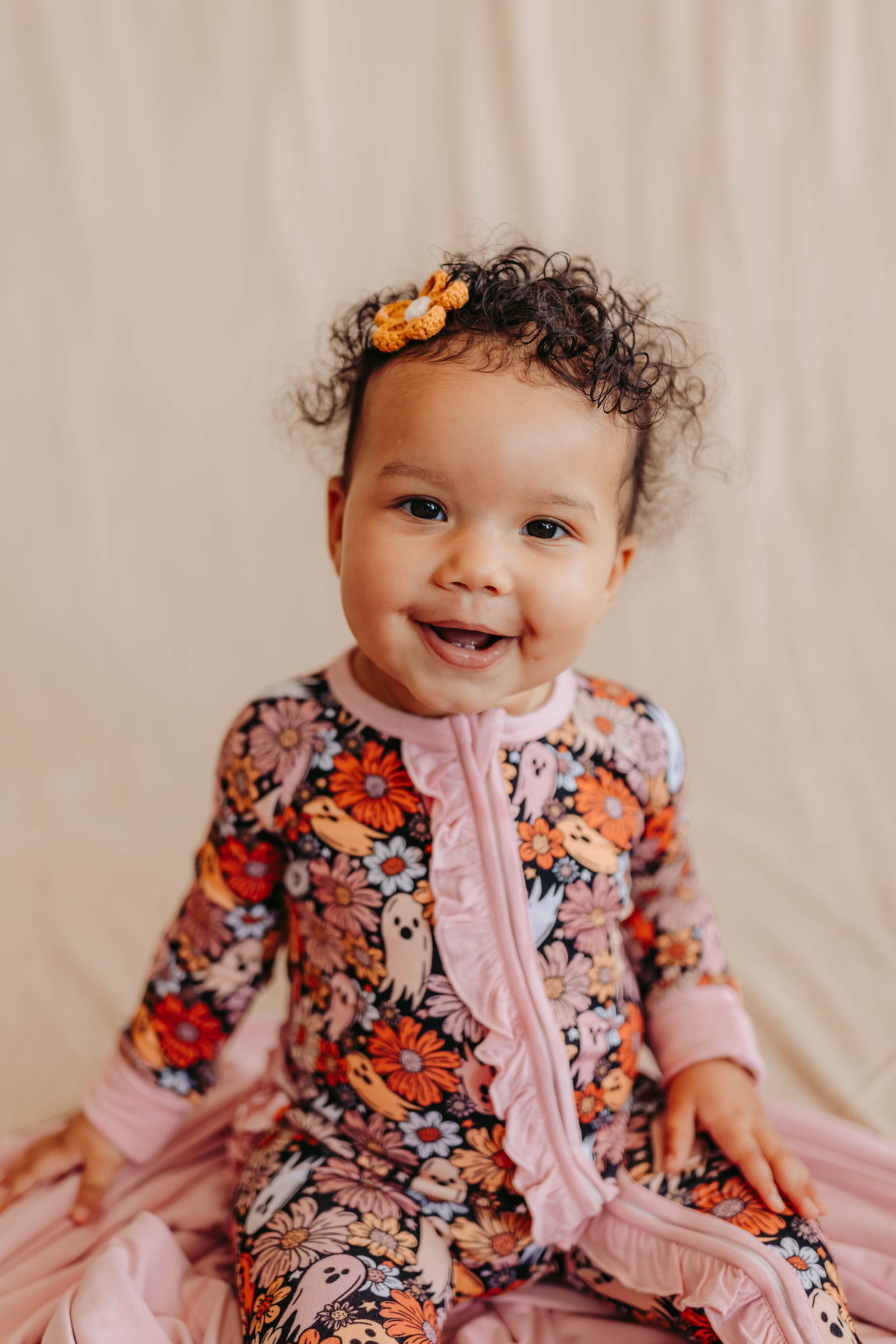 Hey! You're not so spooky! You're CUTSEY! The Elvira nursery gown is the cutest way to show off your baby this Halloween with Cuddle Butter's special spin on the traditional "black and orange" Halloween. We added PINK ghosts because pink is not just for Wednesdays, it's for all the days, and all the holidays!