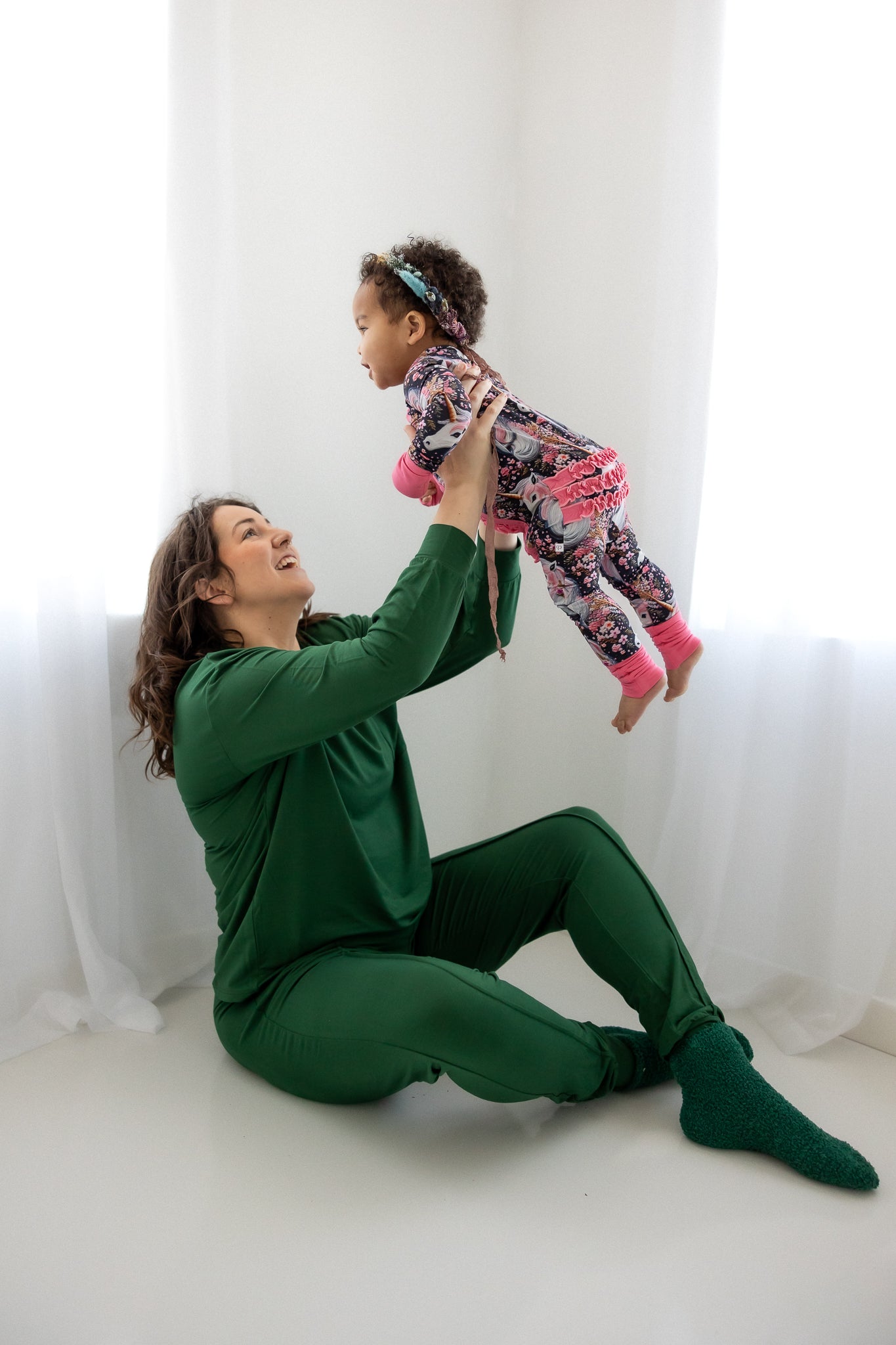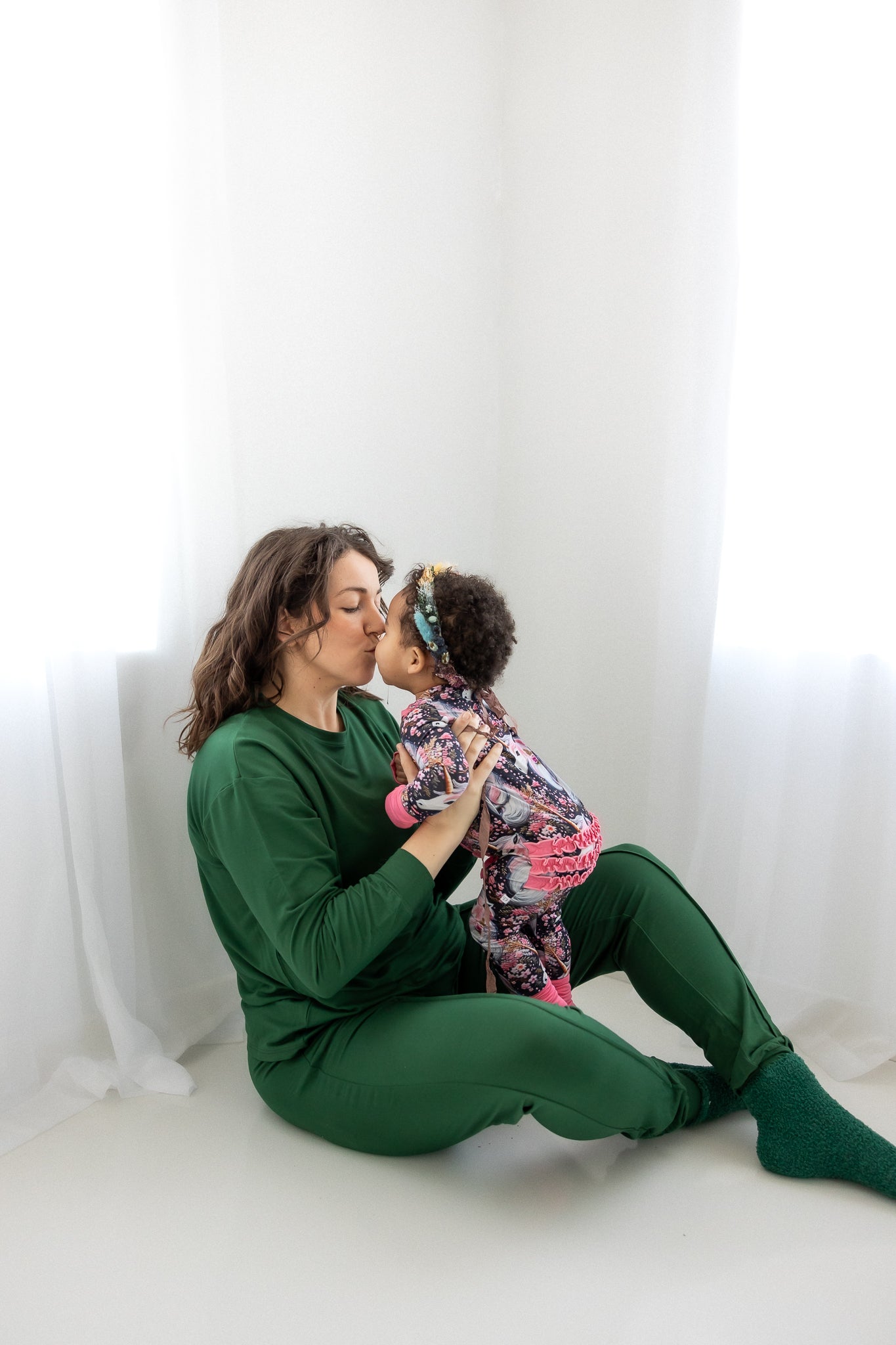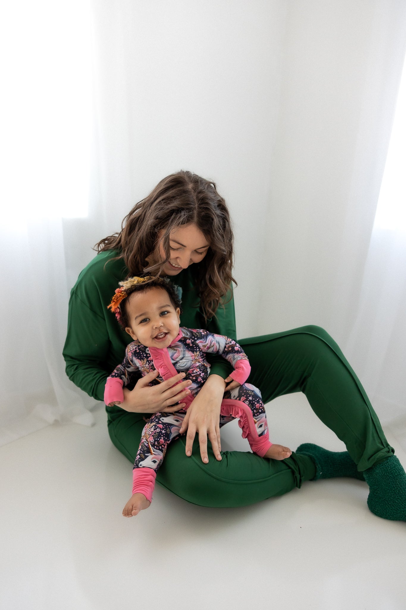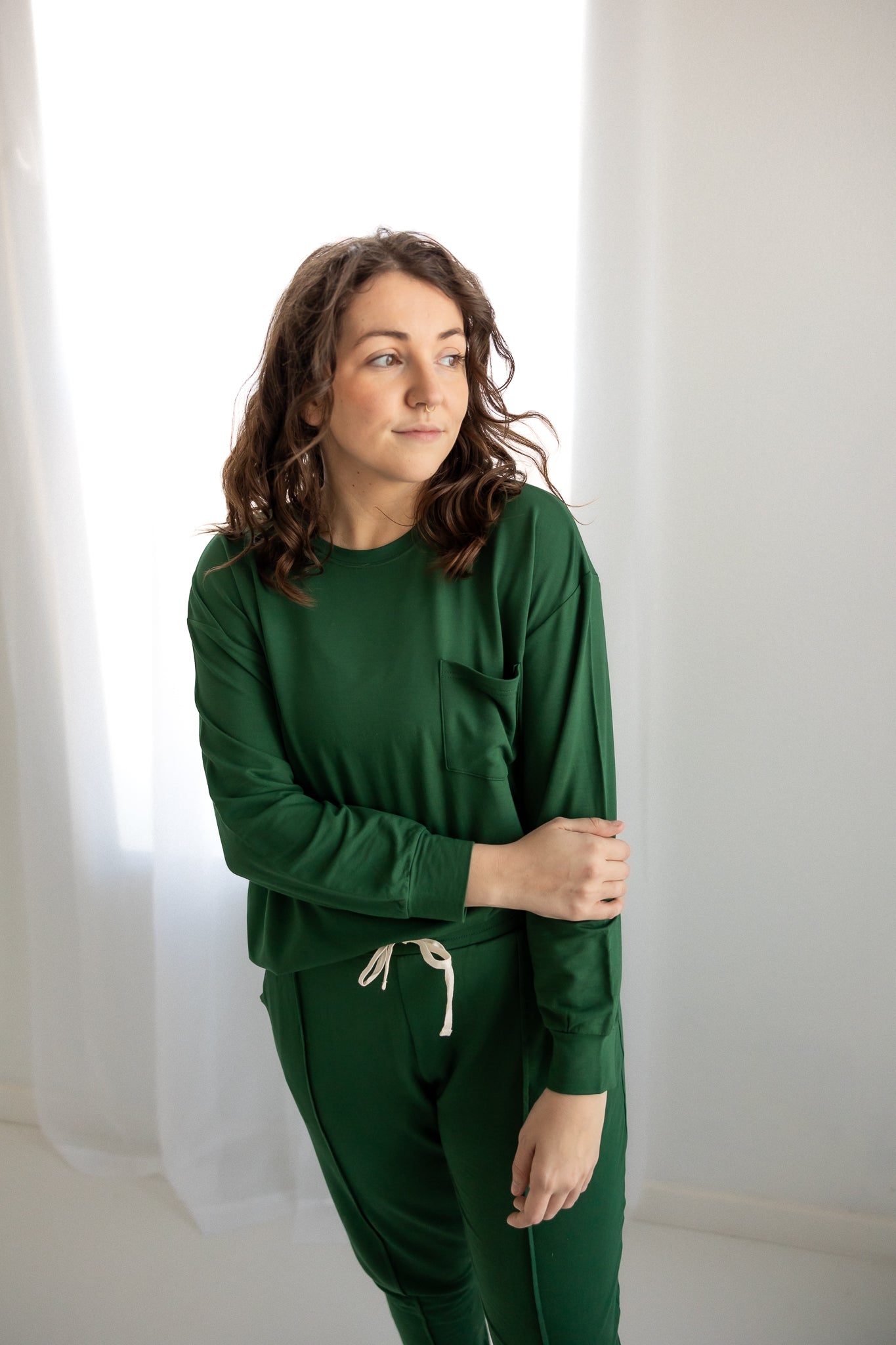 French Terry Women's Bamboo Jogger Set - Evergreen -