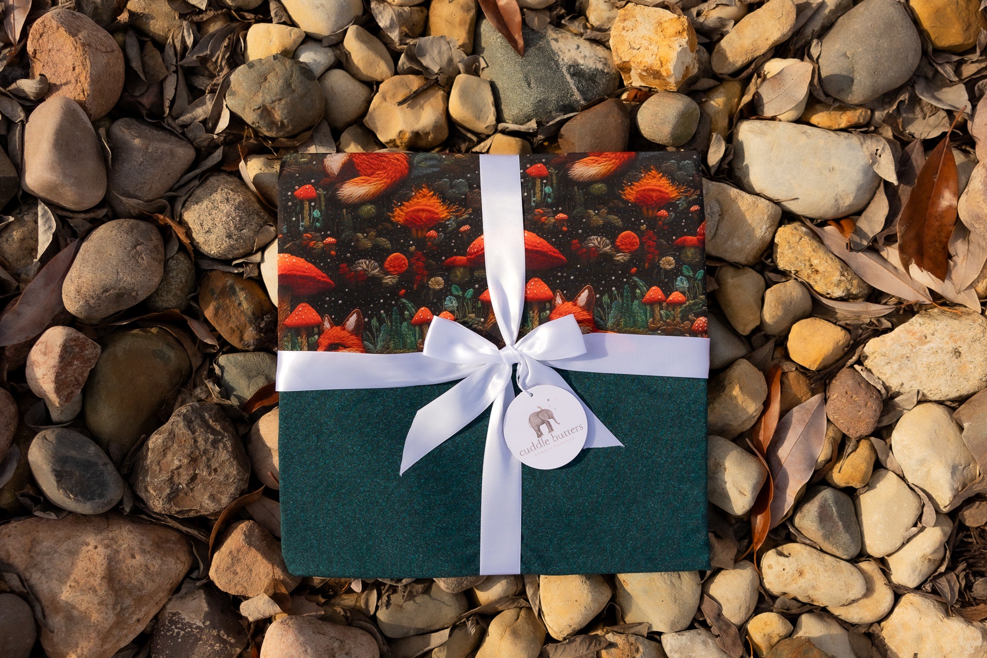 Finnigan the friendly forest fox is a beautiful 3 dimensional design with details like never before! Imagination runs wild with mushrooms and foliage that appear to be hand stitched. RIch forest green textured trim make this the coziest design yet.