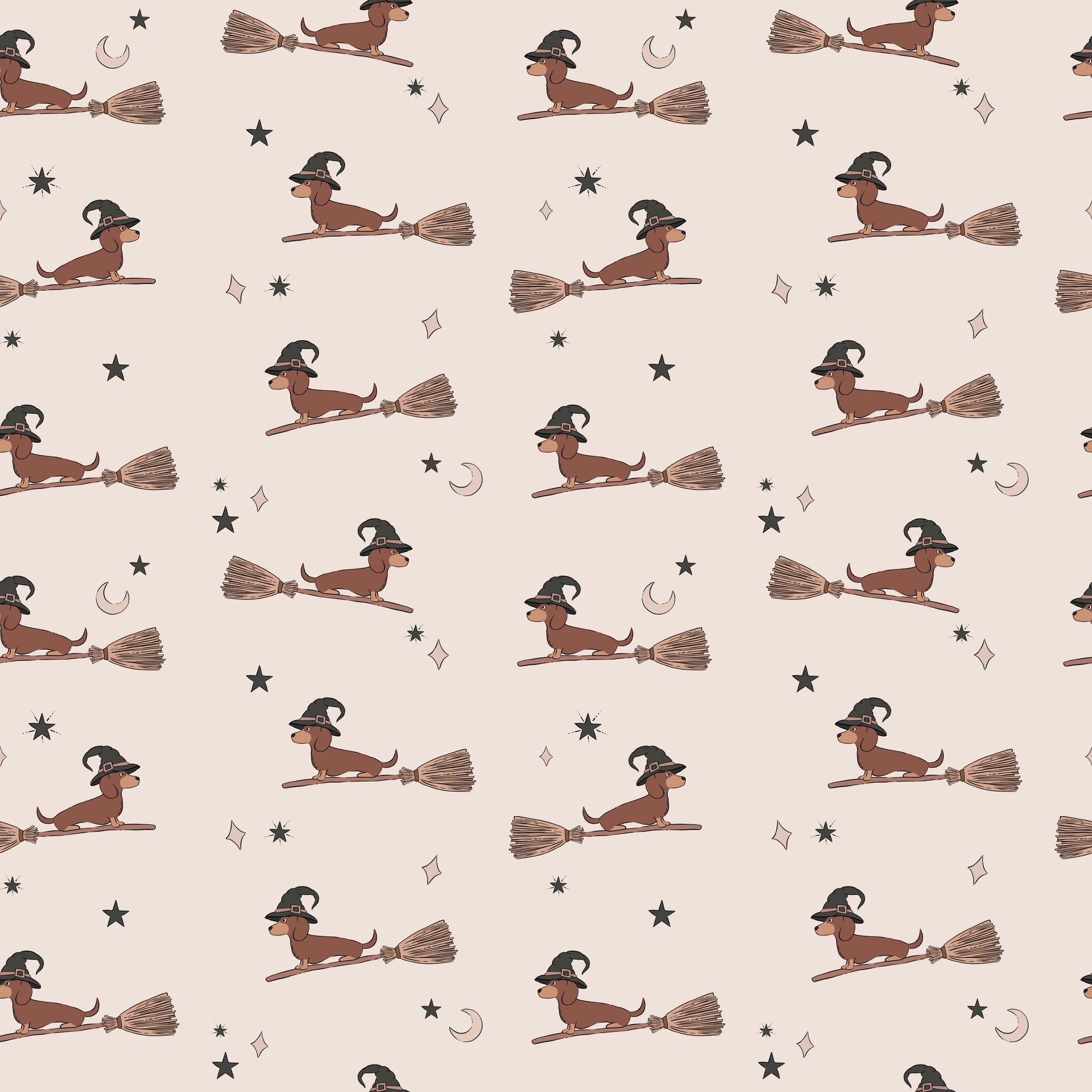 It's a bird! It's a plane! It's a flying dachshund?! Happy Halloweenie will have you in stitches this Halloween! It's the perfect soft neutral design for family matching too.