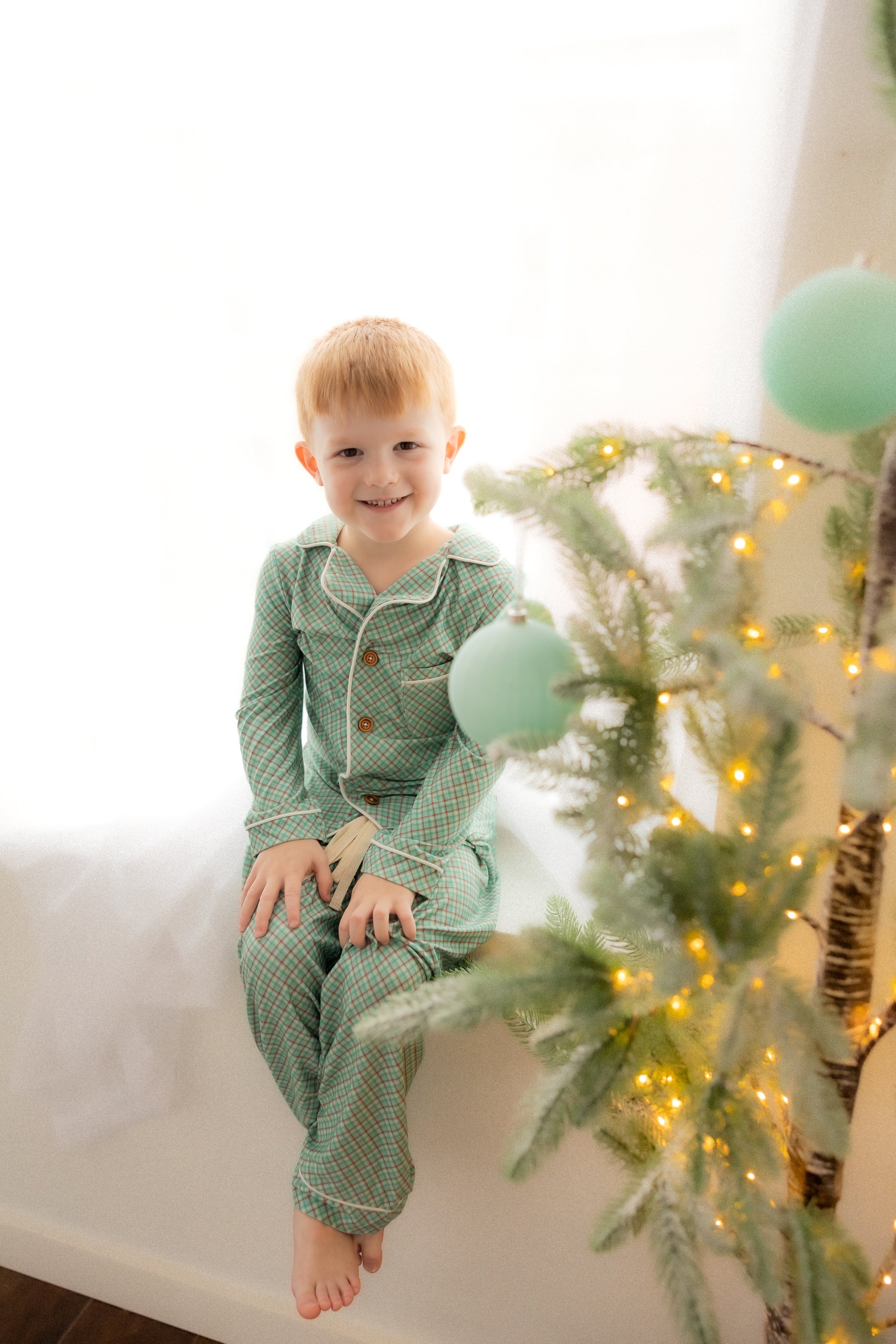 Children’s Collared PJ Set - Little Dudes and Ladies will feel dapper like Daddy in this traditional Collared PJ set. Beautiful details such a piping trim and wooden buttons give these jammies an elevated look for holiday photos and making memories. This style is relaxed and loose fitting.