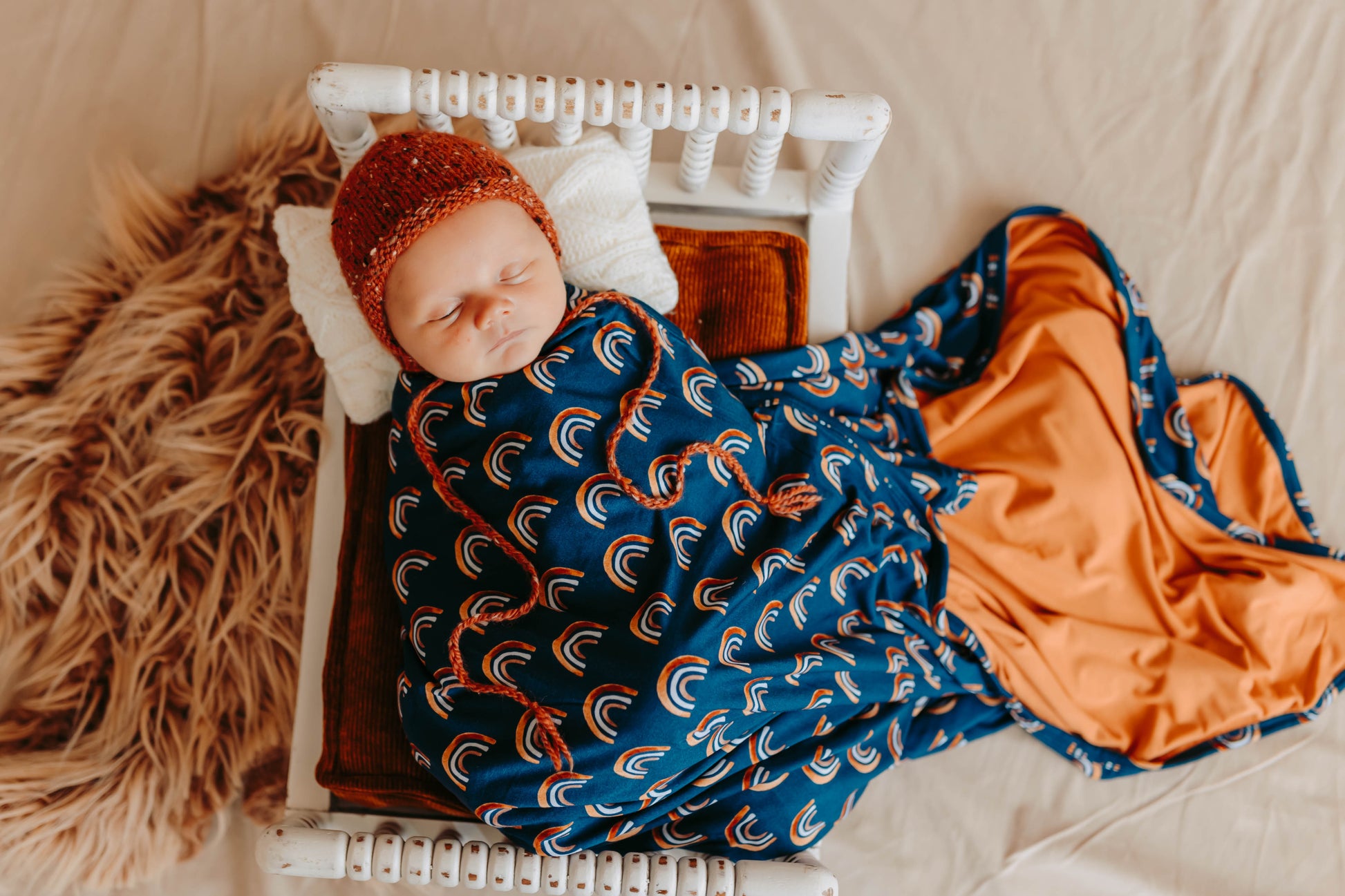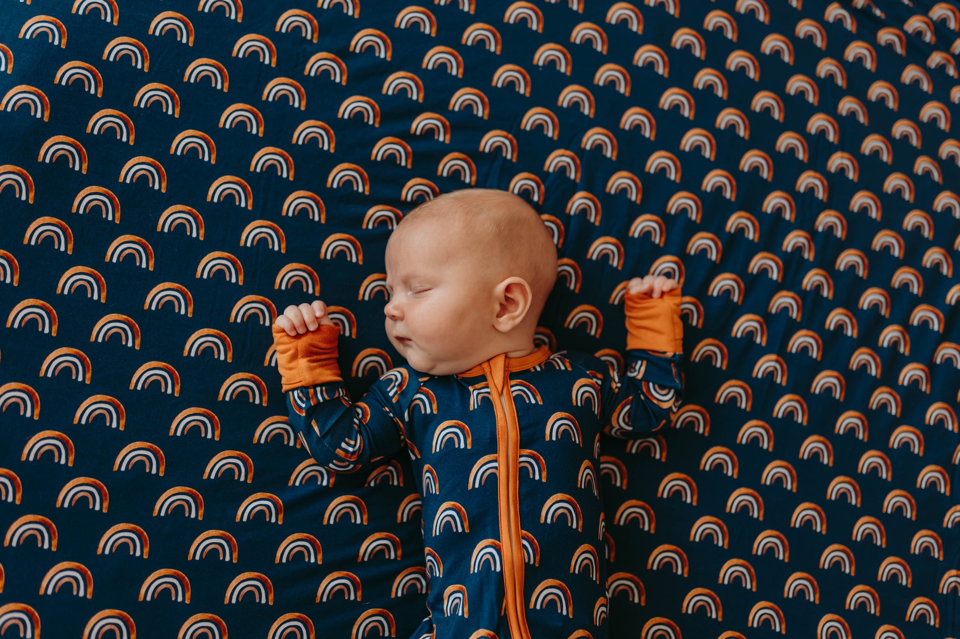 His promise, the rainbow. Noah means "rest, repose, & peace." which is perfect for this peaceful boho rainbow design on a strong navy background. The watercolor effect softens this print to make it neutral for family matching. We would like to acknowledge and honor all rainbow babies with this design.