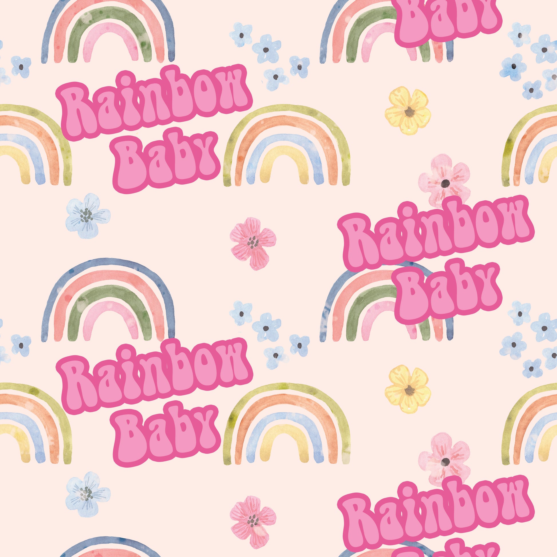 Rainbow Baby Hope is a joyful pattern with watercolor rainbows, flowers and a bold fun boho text. Rainbow Baby Hope is great for all rainbow lovers! We want to celebrate all rainbow babies and honor those families with this design. Trimmed in bubble gum pink, Rainbow Baby Hope is sure to help bring snuggles and joy to any family.