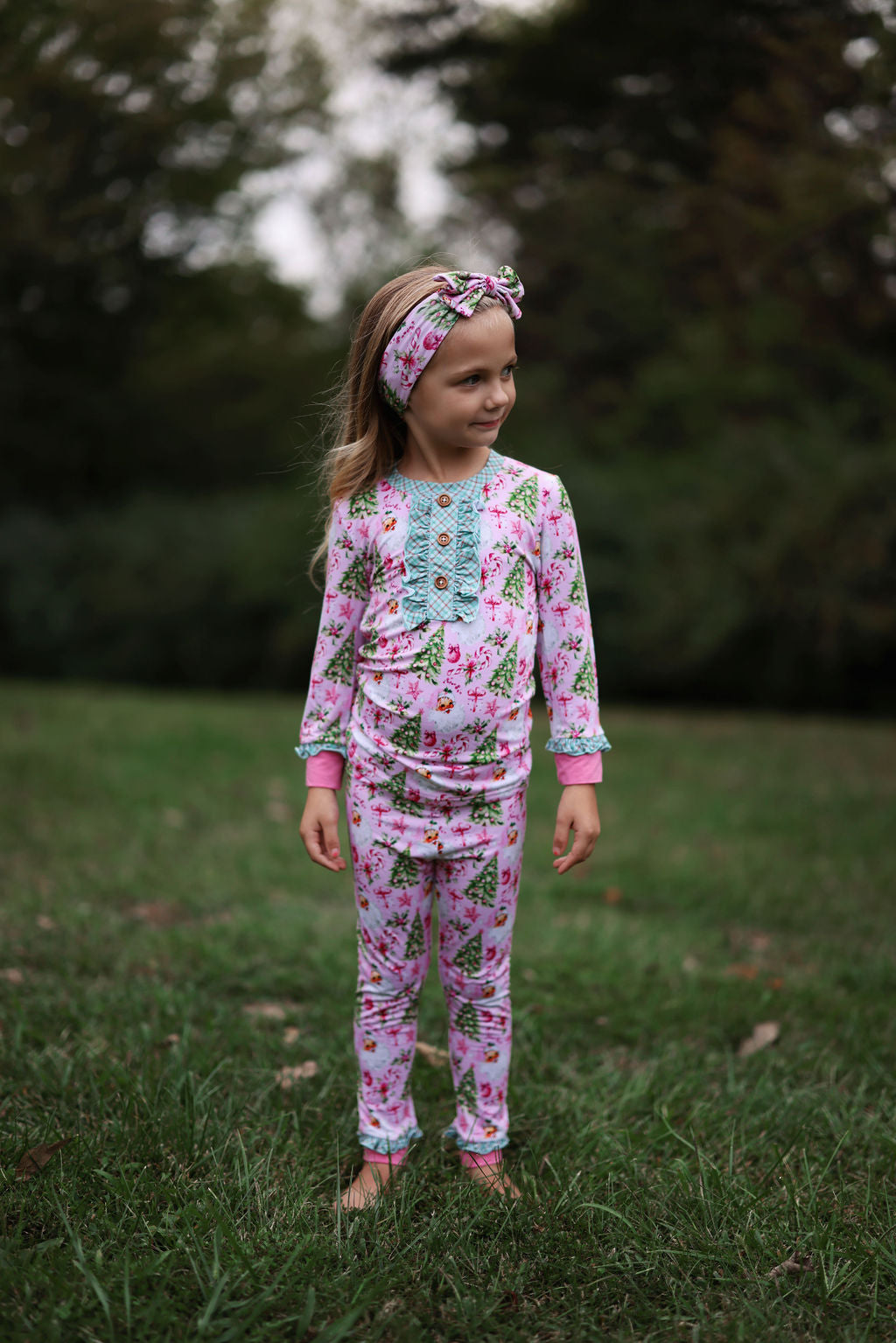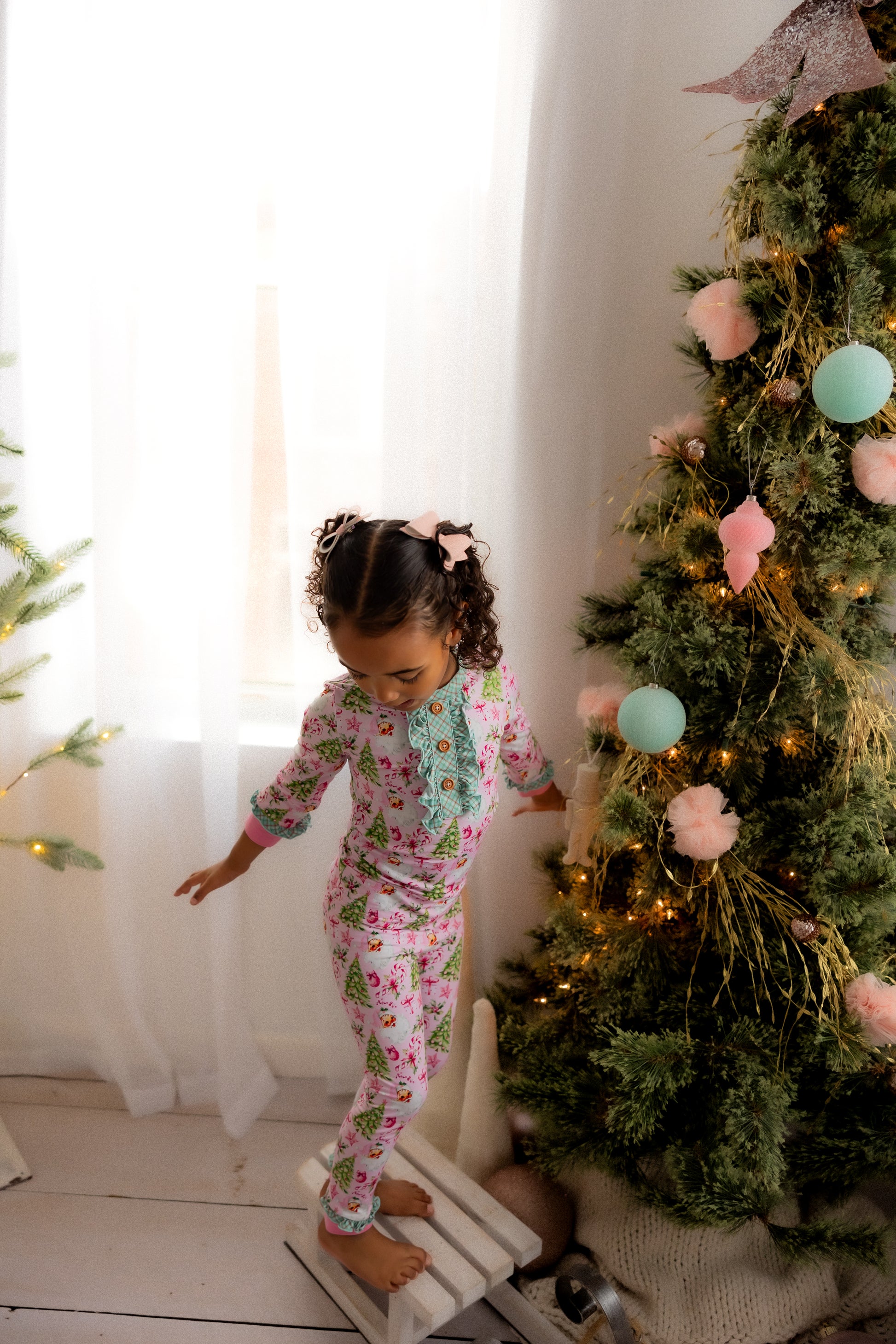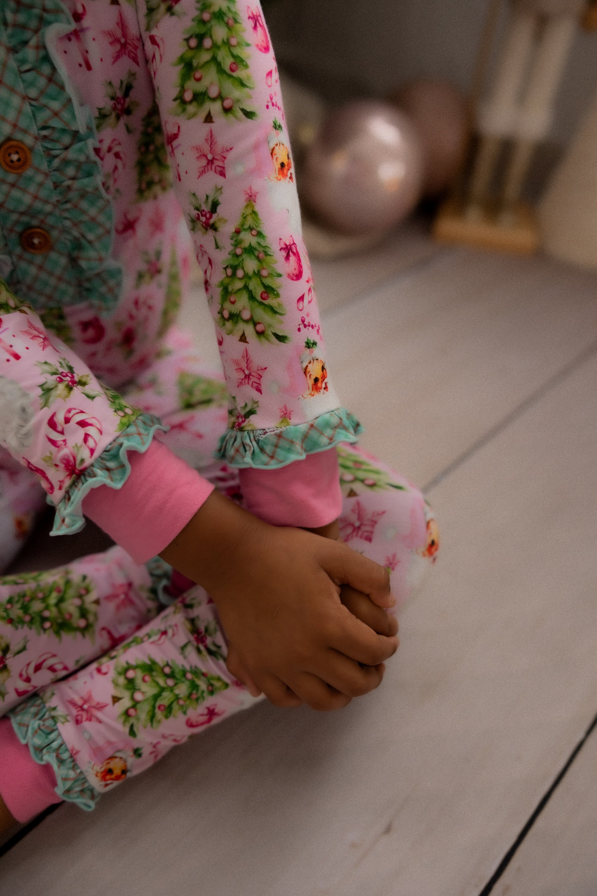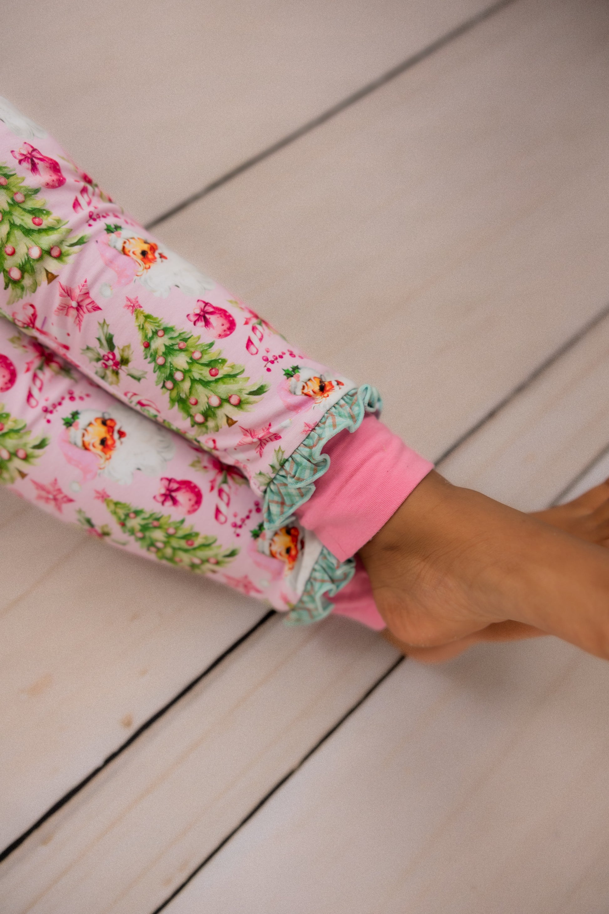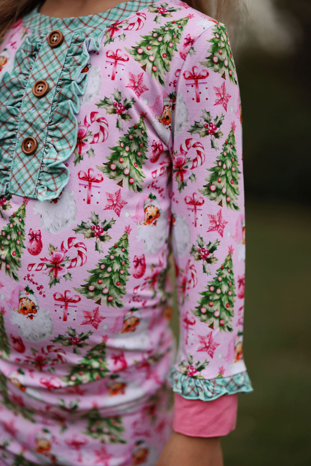 Rosy Cheeks - Pink Vintage Santa Children's Bamboo Pajama Set