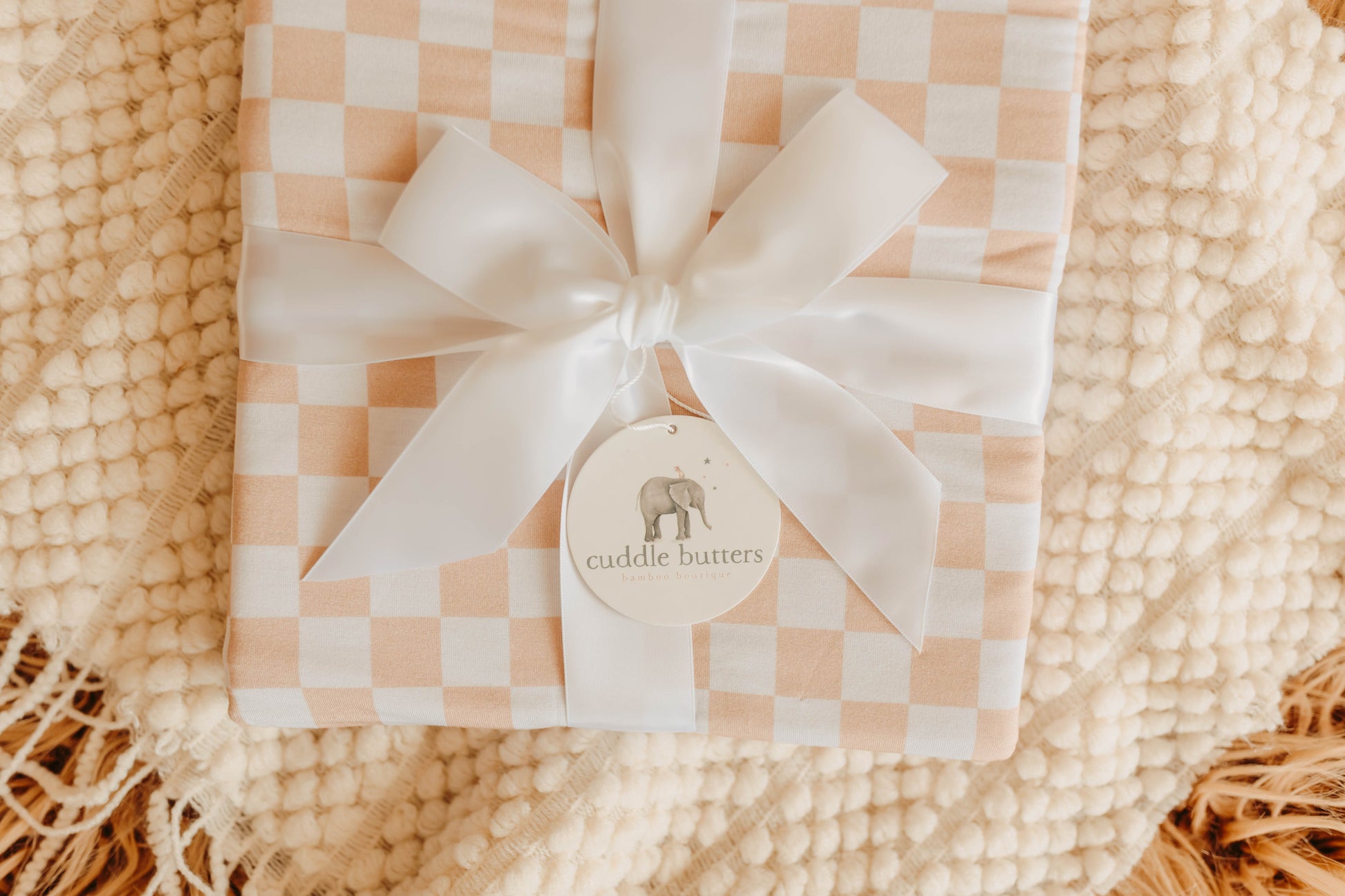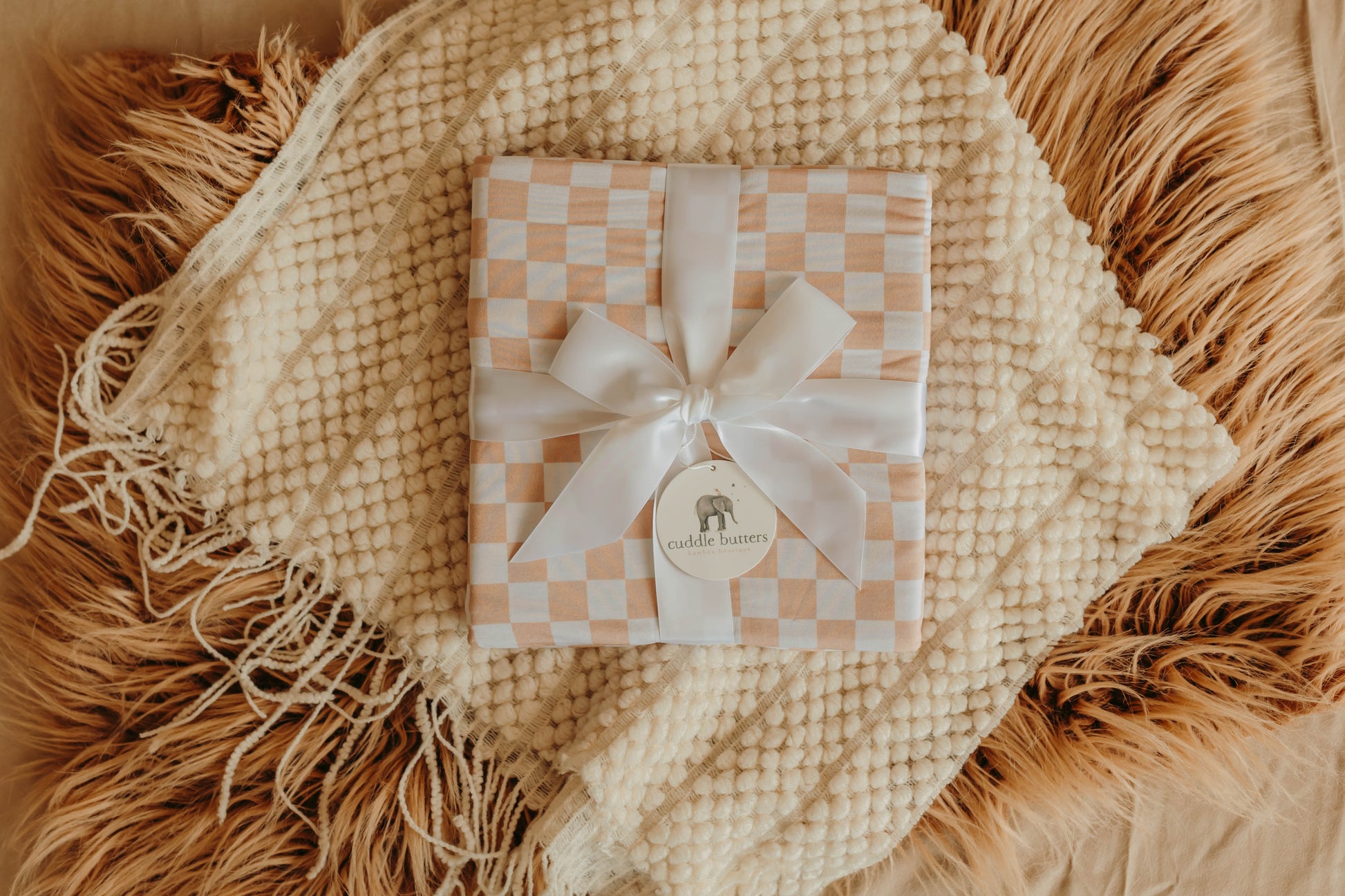 Check out this one baby! Taylor is the perfect checkered almond and white design for anyone! Taylor is neutral for family matching and perfect for hospital photos.
