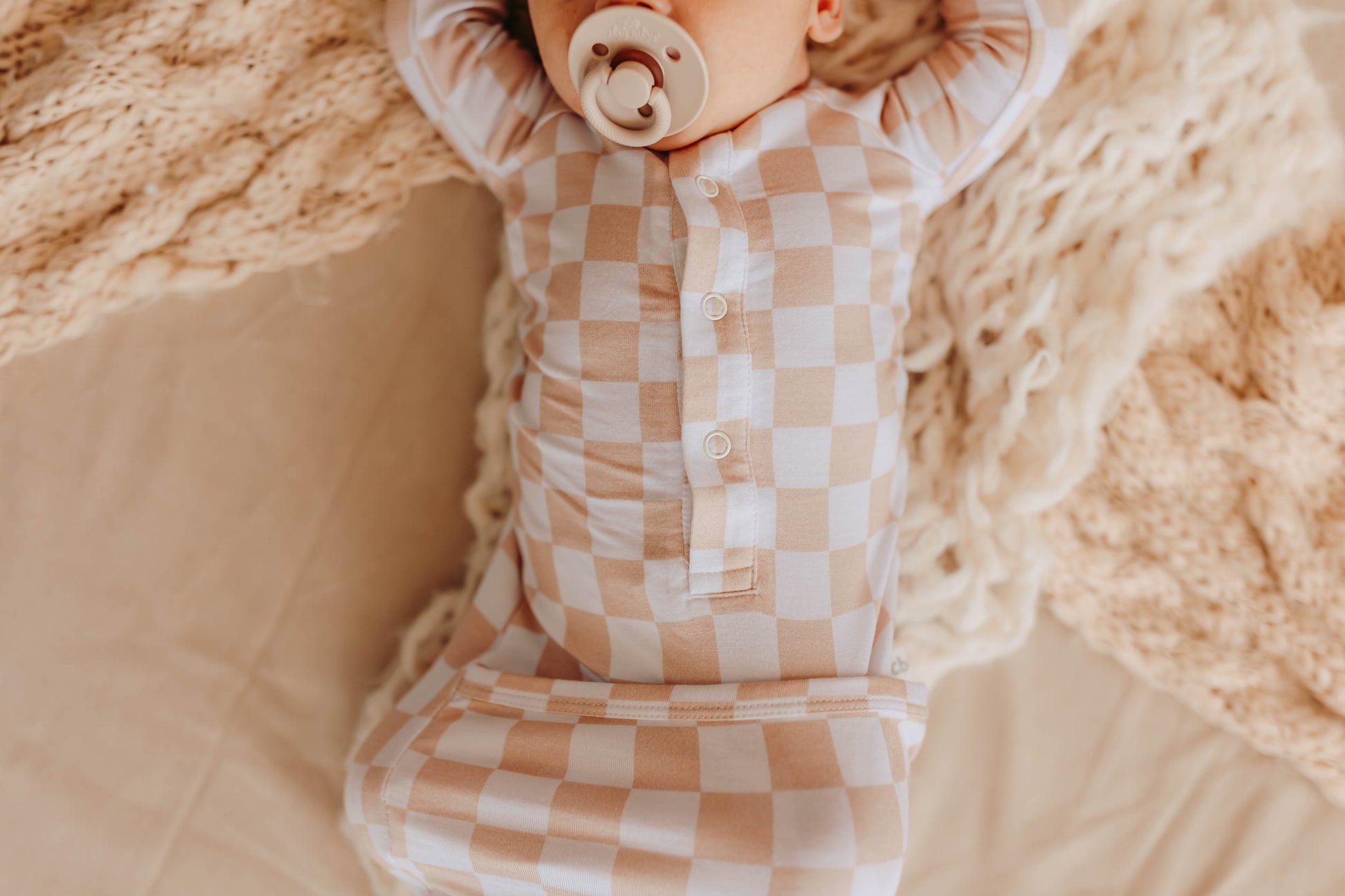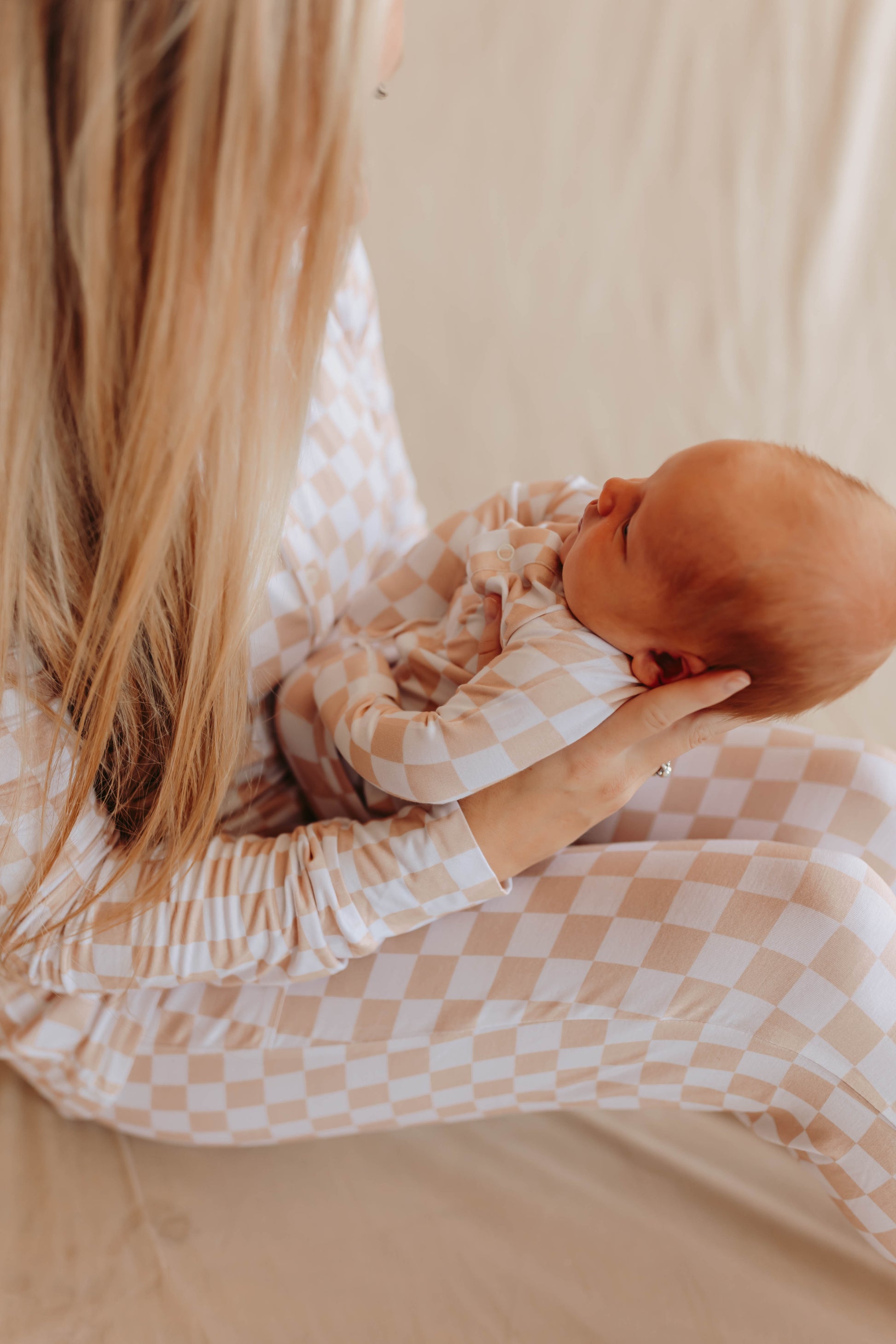 Check out this one baby! Taylor is the perfect checkered almond and white design for anyone! Taylor is neutral for family matching and perfect for hospital photos.