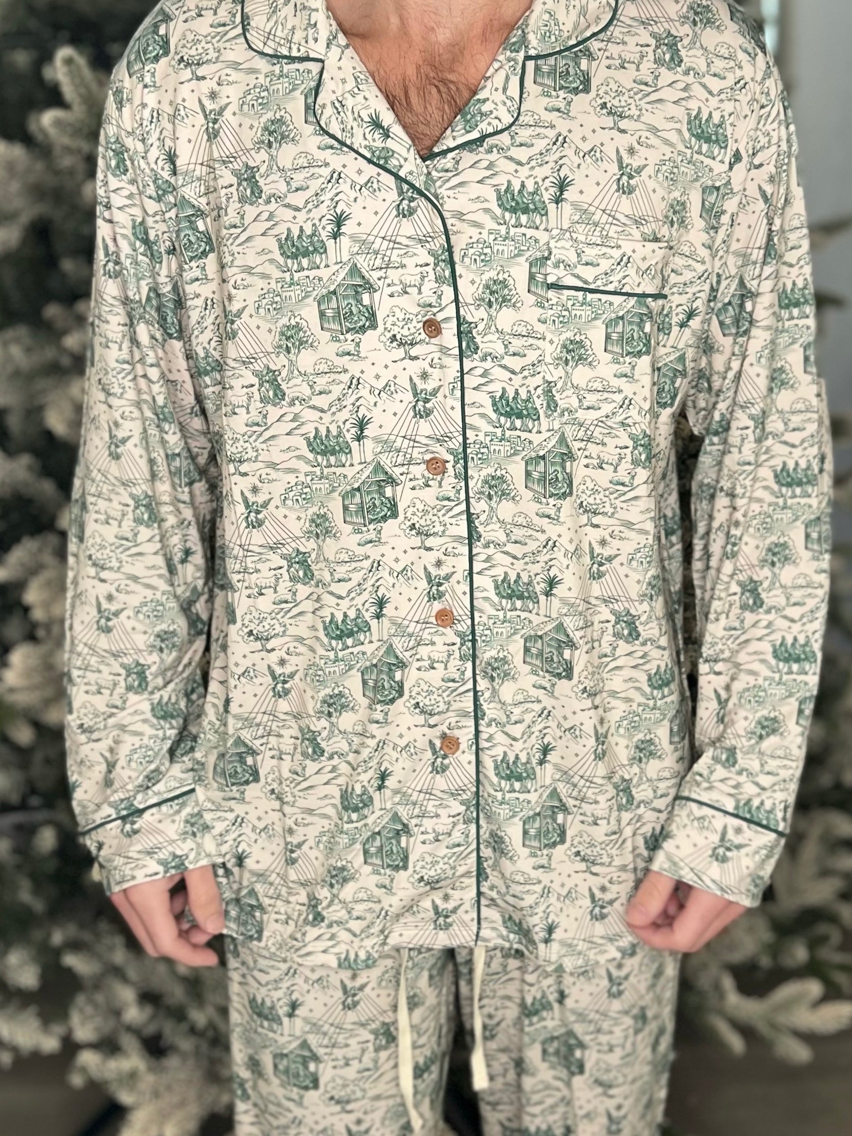 "Bethlehem" -Christmas Nativity Toile Bamboo Men's Pajama Set